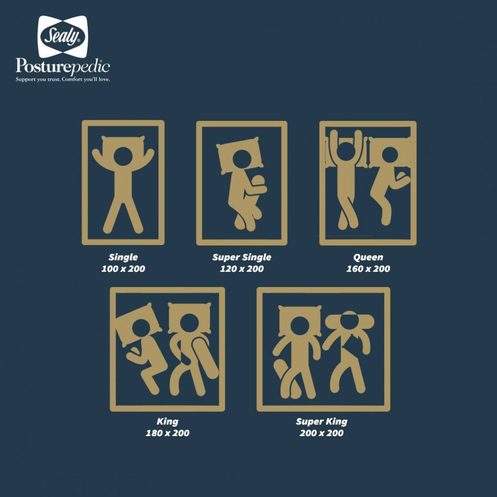 Posisi tidur tidak selalu bisa kamu kontrol saat tertidur pulas. Ada orang yang tidur dengan posisi yang sama mulai dari tidur sampai bangun dan ada juga yang tidur dengan posisi berputar 1800 – 3600. Ukuran yang dikenal dengan tipe Queen Size ini dapat menjadi solusi bagi kamu yang tidurnya membutuhkan ruang gerak selama tidur. Ukuran 160 x 200cm memang terlihat luas dan dapat digunakan untuk lebih dari satu orang, namun kamu juga harus mempertimbangkan karena jika kamu tidur berdua jadinya akan sulit bergerak. Spring bed ini direkomendasikan untuk kamu yang berbadan gemuk dan masih tidur sendiri.